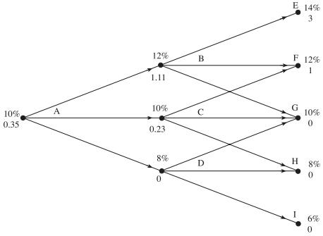 Interest rate trees work similarly to stock price trees except that the discount rate used varies from node to node